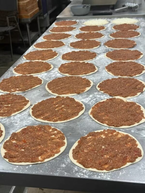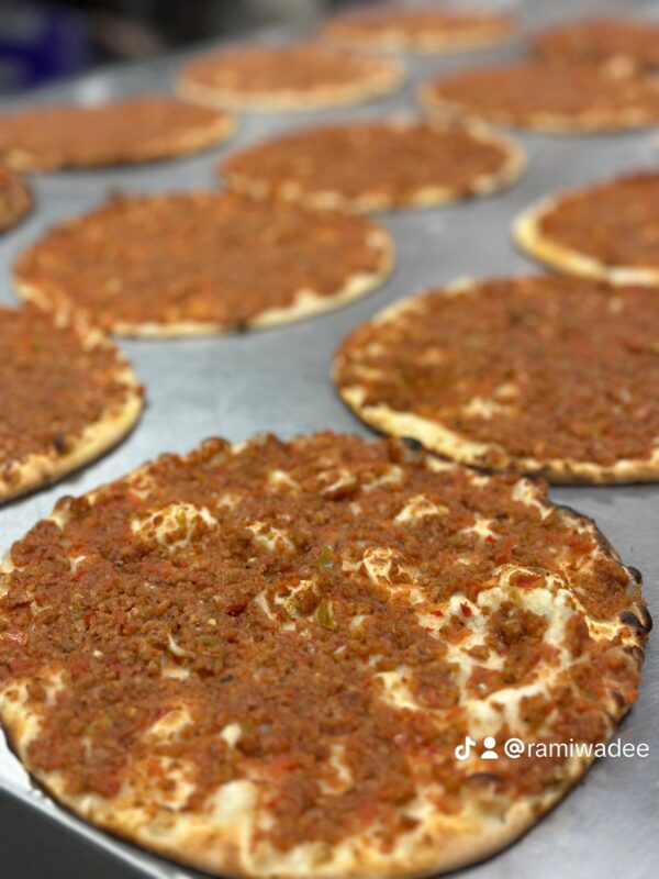 A quintessential savory flatbread, also known as Sfiha. A thin, tender dough is generously topped with a rich blend of seasoned ground beef , mixed with fresh diced tomatoes, onions, and green peppers . The filling is expertly balanced with a zesty kick of Pomegranate Molasses and our house-blend of Middle Eastern spices.