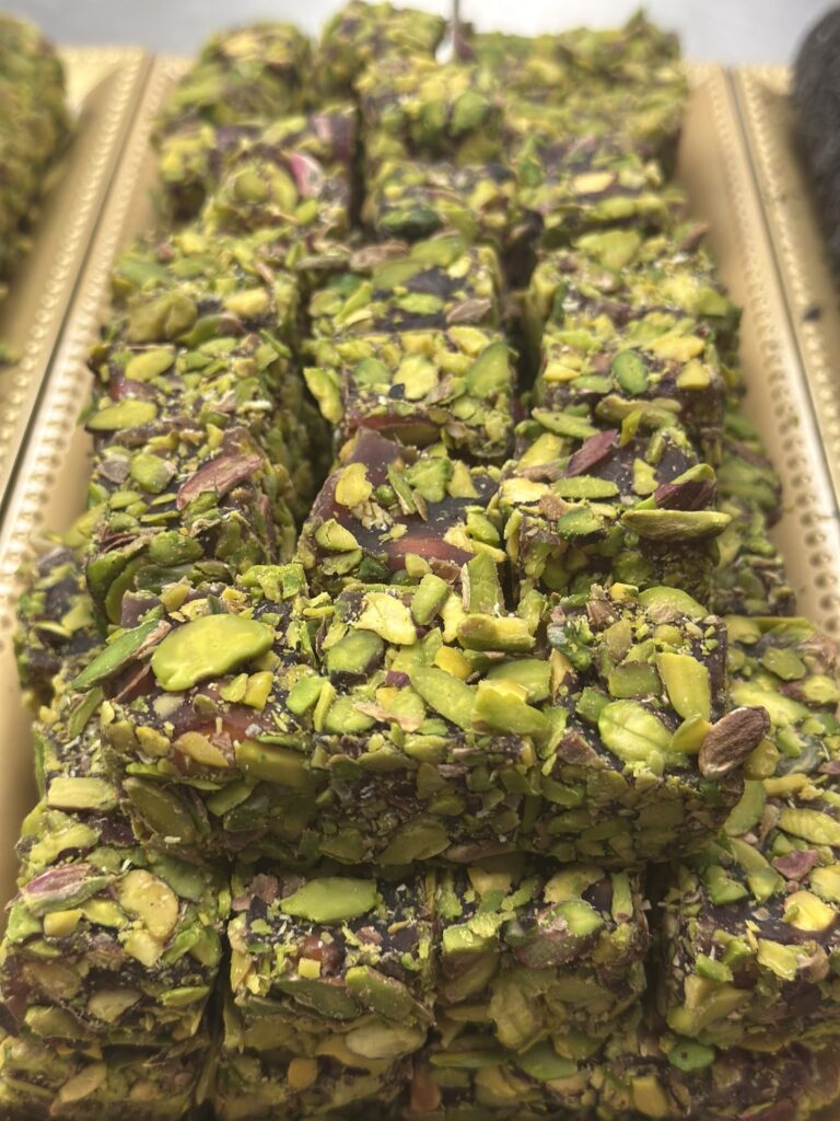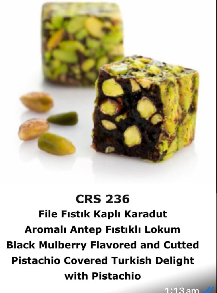 Black Mulberry Flavored and Cutted Pistachio Covered Turkish Delight with Pistachio