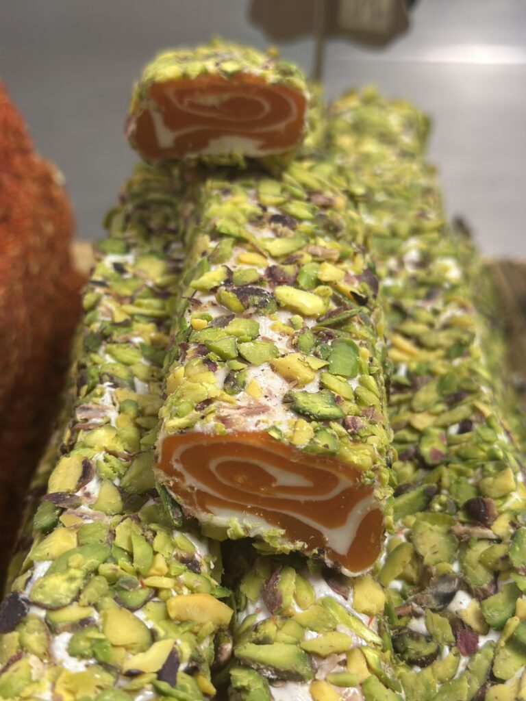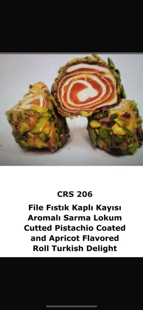Lokum Cutted Pistachio Coated and Apricot Flavored Roll Turkish Delight