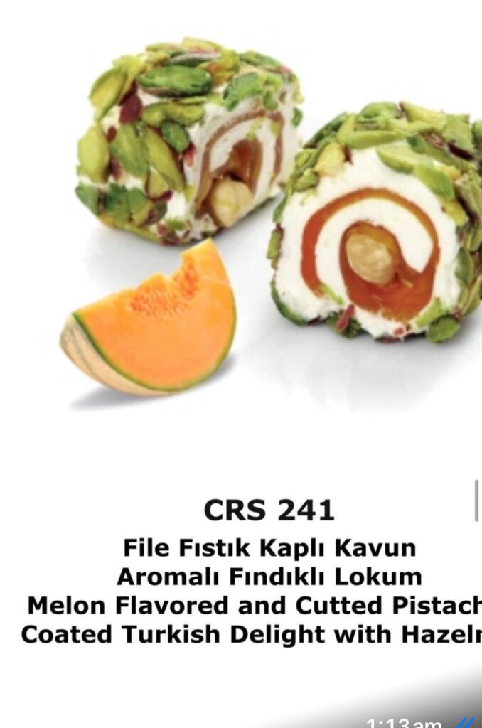 Melon Flavored and Cutted Pistact Coated Turkish Delight with Hazelnut