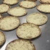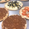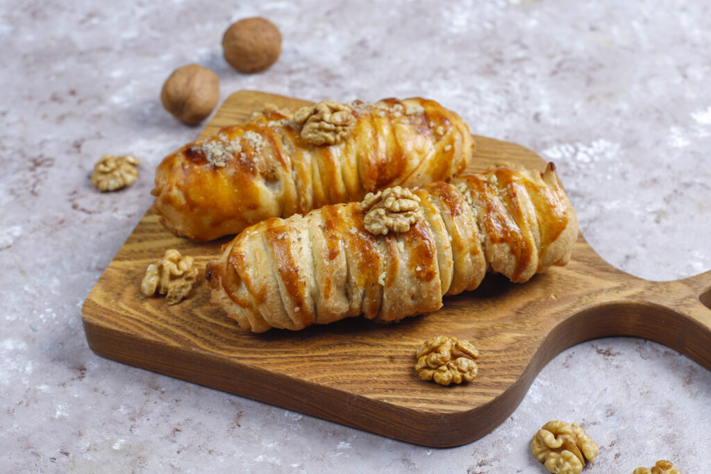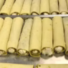 The image displays neat rows of uncooked or freshly prepared cylindrical pastries, likely a type of Rolled Kunafeh (Knafeh Mabrumeh), […]